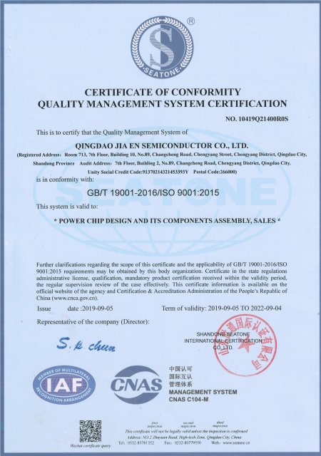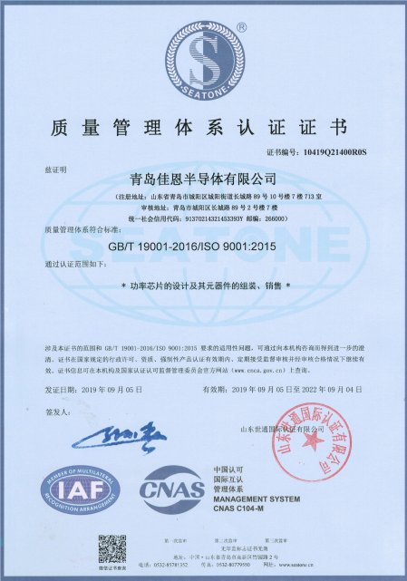 热烈祝贺我司通过2015年ISO-9001质量体系认证评审,为进一步规范公司生产、科研、销售操作流程、有效控制风险、提高投资收益,形成标准化经营、规范化管理的模式,公司从战略眼光出发,顺利通过中国质量认证中心关于ISO-9001质量管理体系的认证和审核,于2019年09月05日获得ISO-9001质量管理体系认证证书。