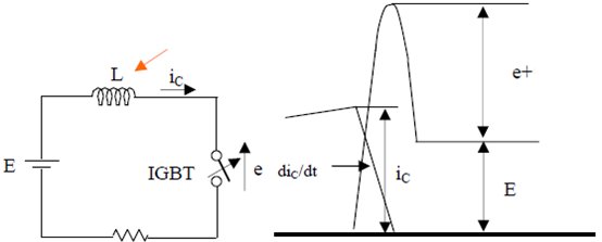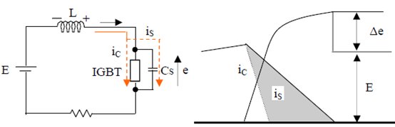When the IGBT is turned off, a surge voltage will occur between the collector and the emitter due to the energy stored in the inductor. The snubber circuit suppresses overvoltage applied to the IGBT and increases turn-off losses. This is because the snubber capacitor can share part of the energy during shutdown. Be sure to handle the energy absorbed by the capacitor properly.